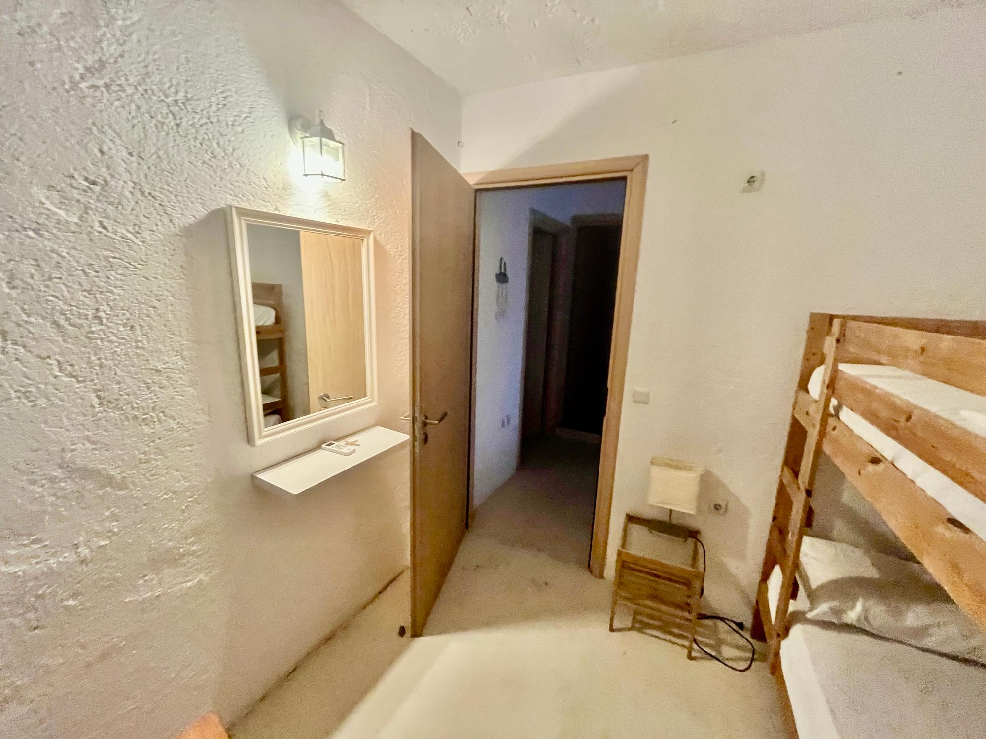 House B (70 sq.m.) also on two levels (35 sq.m. each), features on the Ground Floor an Open-plan kitchen/living room with AC and an internal staircase leading to the First Floor with Two bedrooms, a bathroom, and a balcony.