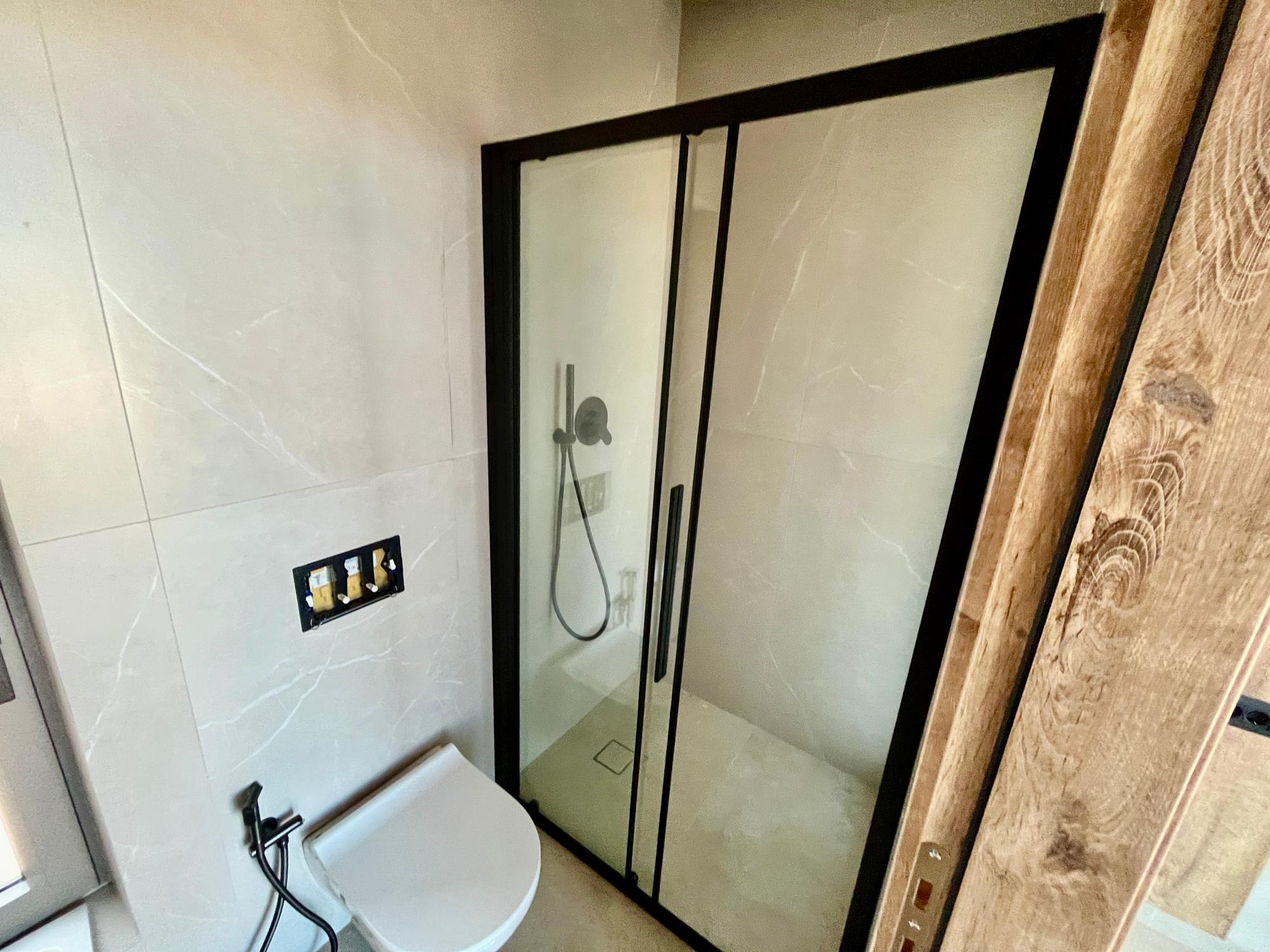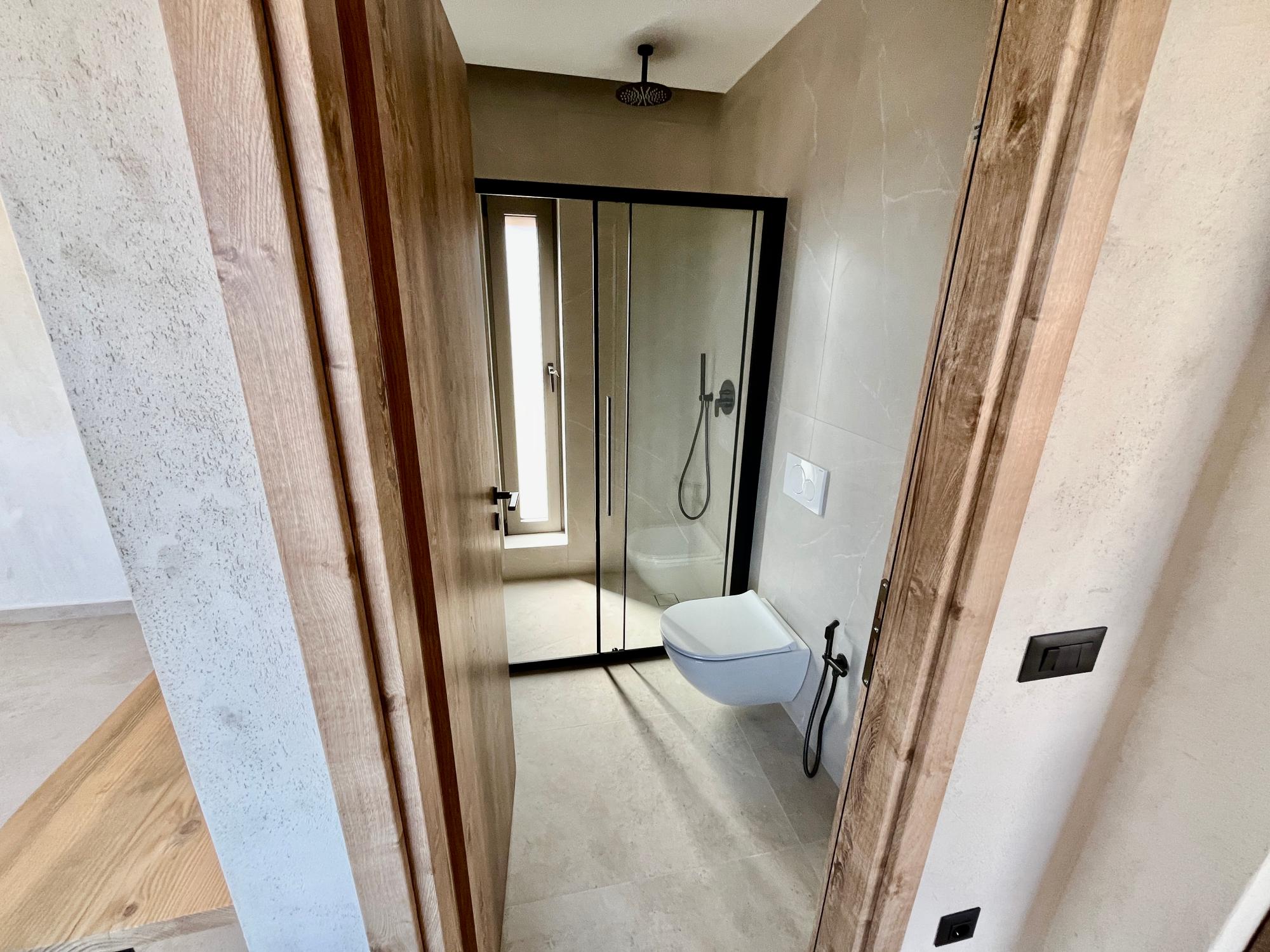 The upper floor comprises a second bedroom with an en-suite bathroom and access to a spacious balcony, where you can enjoy panoramic views of the surrounding hills and coastline.